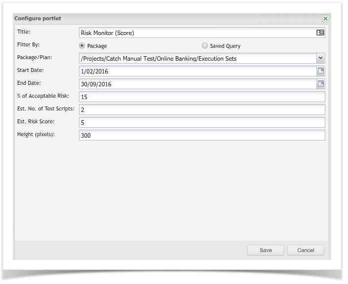 Risk related gadgets are available on Enterprise Tester Dashboards. See the Creating Dashboards article on how to create a dashboard and add gadgets.