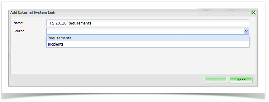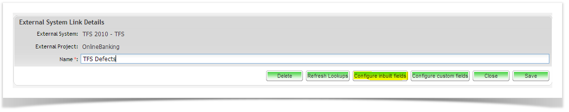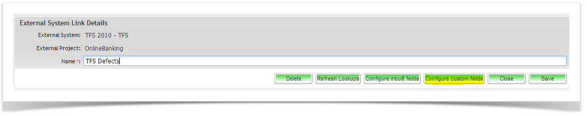 Before beginning this configuration, ensure that custom fields have been set up in Enterprise Tester including picklist values, if applicable Click on the 'Configure Custom Fields' button from the External Link Details screen to open the Configure Custom Fields Mapping screen where you can map ET custom fields to TFS custom fields.