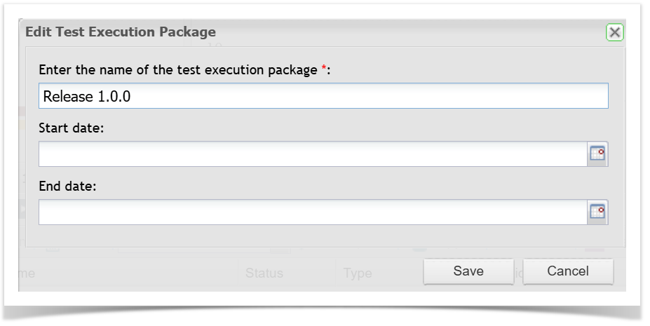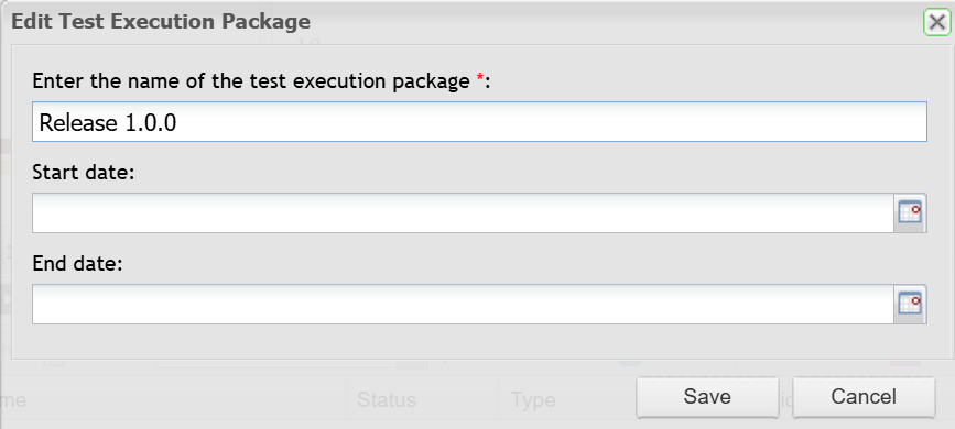 - Click Save to finish. The test Execution Package will be created under the selected area.