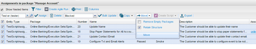 - A pop up window is displayed, select the To package where you would like to move the items to.