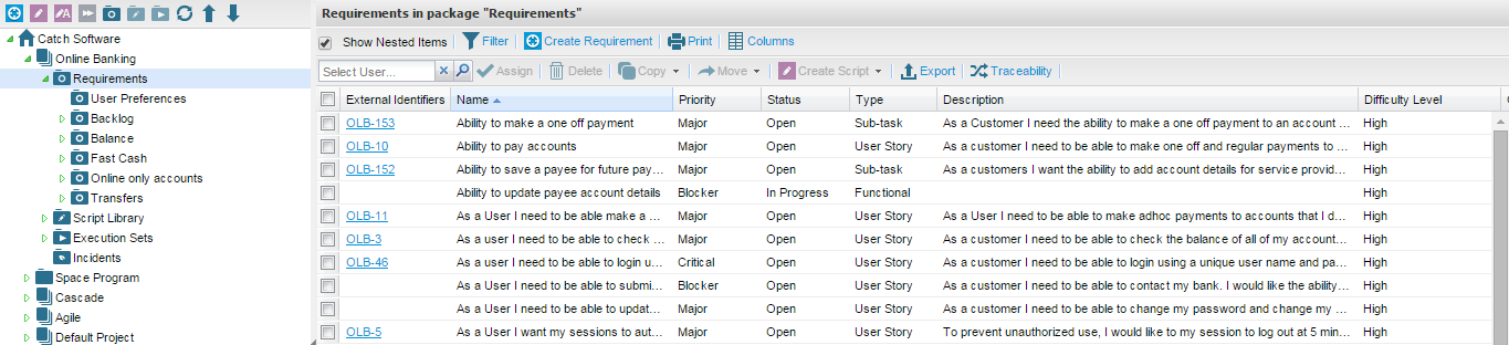 Additionally when you view requirements you can view requirements in the package you have selected and also any sub packages if required. Tick or un-tick the “Show Nested Items” box as required.