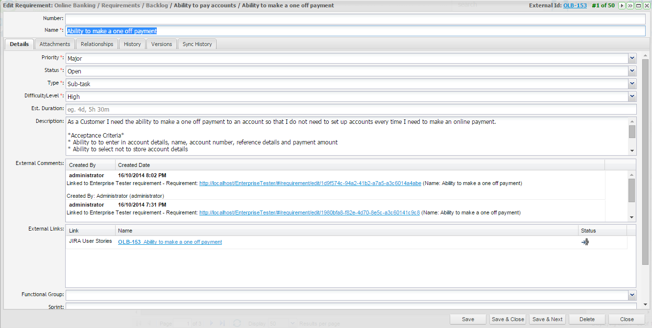 - Alternatively, double Click on the requirement in the grid view.