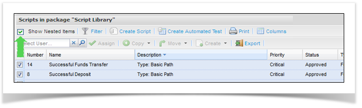 When you view scripts you can view scripts in the package you have selected and also any sub packages if required. Tick or un-tick the “Show Nested Items” box as required.