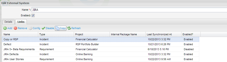 From the Resources Tab, expand Project Links and double click on the Project that contains the link you wish to copy. All project links for the project will be displayed.