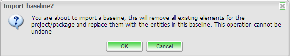 3. Click to select the baseline you would like to revert back to or alternatively you could import a baseline from your file system to restore (see the section below for details). Click on the Restore button on the toolbar. A confirmation message will appear. To proceed, click OK.