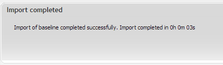 7. Once the baseline is restored, you will see an 'Import Complete' confirmation message.