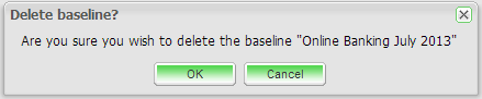 Baselines can be easily deleted if they are obsolete or not required. Note that a deleted baseline can not be restored. Project Administration access is required to delete baselines. To delete a baseline, use the following steps: