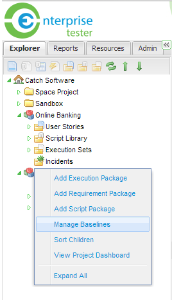 1. From the Explorer tab, right click on your project or package and select Manage Baselines.