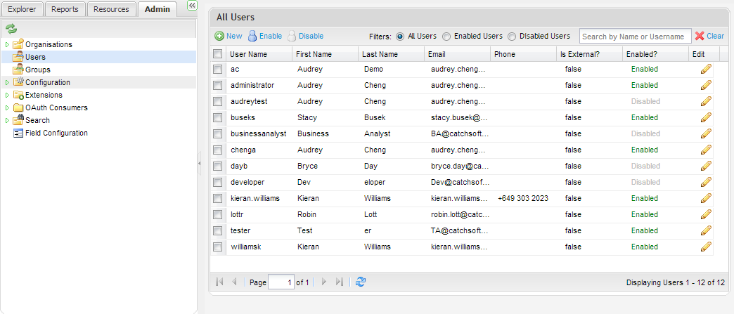 Similarly, you can enable users by selecting the user or users you wish to reactivate and clicking on Enabled from the toolbar.