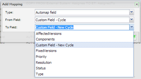 - Automap – Automap from External System: Fixed Versions to ET: Fixed Versions
