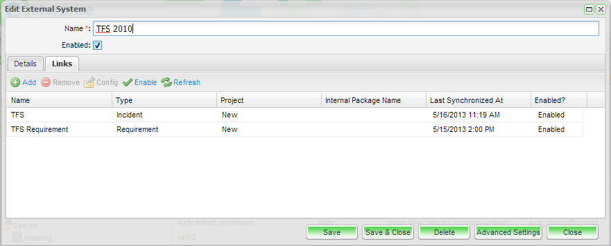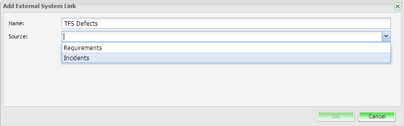 Once the TFS connection has been created (see External Systems), you can begin associating projects in TFS with projects in Enterprise Tester. Project links can be created and managed either from the Resources tab on your tree view navigator or on the External System Links tab.