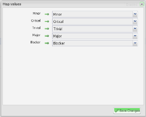 To complete this configuration, you will need to choose ET and TFS fields whose values will be synchronized and then you will need to complete mapping any values that do not exist in the system that you are synchronizing to. All values that have exact matches in both systems will automatically be mapped.