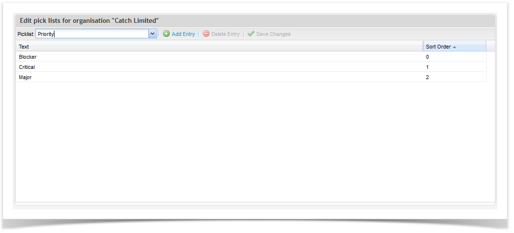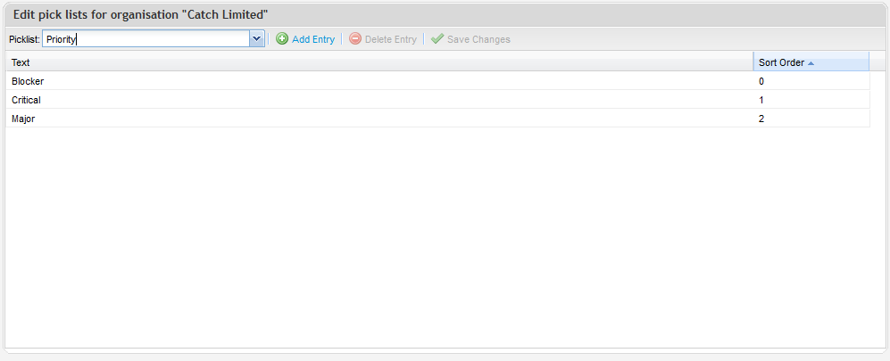 Managing your picklist values at the organisation level is useful when you have standard field values that apply to the majority of your projects. When new projects are created, they will retain the organization picklist values when created. Note however, that changes to picklist values at the organisation level will only apply to new projects. Existing projects will need to be updated individually at the project level.
