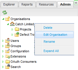 You can update or edit your Organization details by expanding the Organisation folder and right clicking on your Organization's name. Select Edit Organisation from the menu.