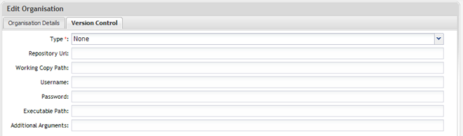 Subversion, Perforce and GIT are supported version control applications. Once version control is configured, projects that are created can choose to inherit version control from the organisation.