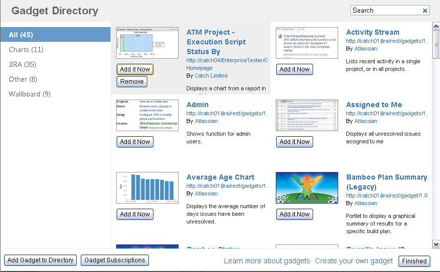 - The Enterprise Tester gadget should now be available in the list of gadgets. Now click the "Add it now" button to add this new gadget to your dashboard.