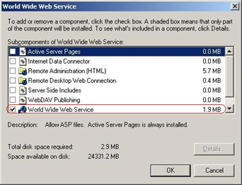 Highlight this item, and click "Details...". Highlight, "World Wide Web Service" and then click "Details...".