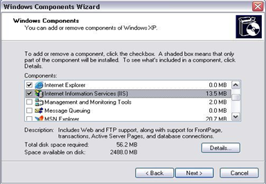 Staying within the "Add / Remove Windows Components" and "Application Server", scroll to "Internet Information Services".