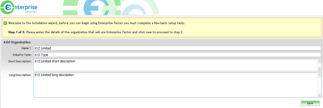 You will be requested to supply the organization details for the installation.