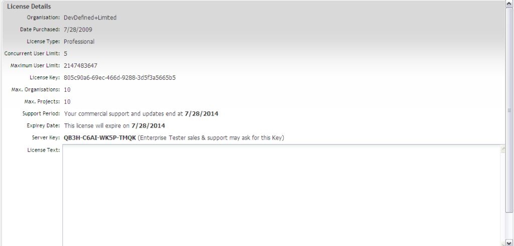 You can also view and update the license details for Enterprise Tester. To View License Details: