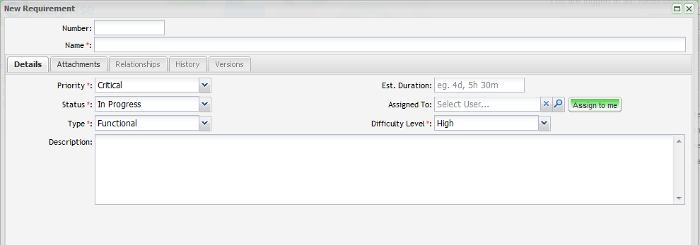 3. On the “Details” tab enter the requirements details:
