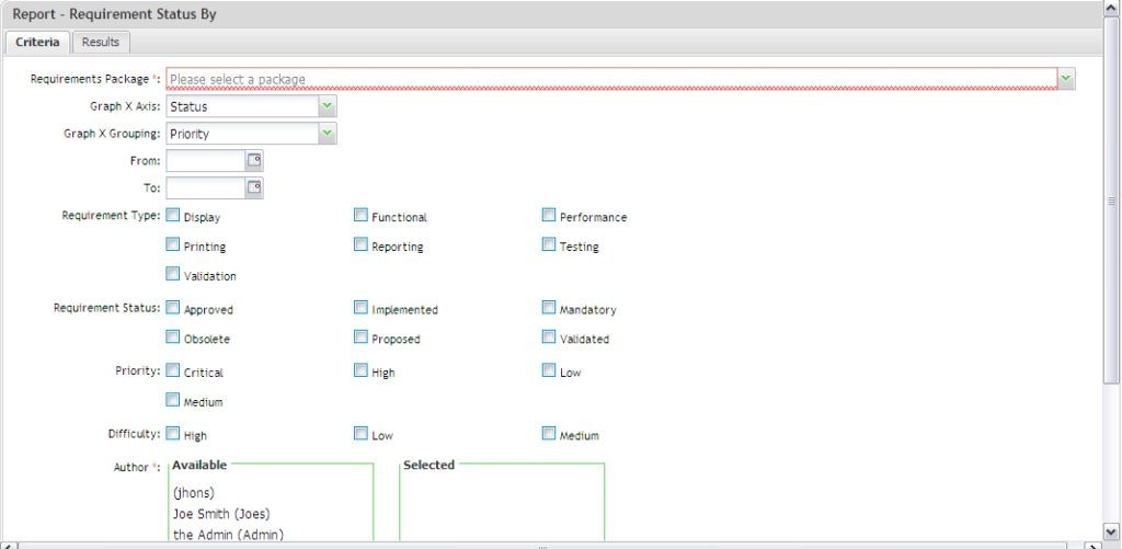 Requirements Status | Select the required values |