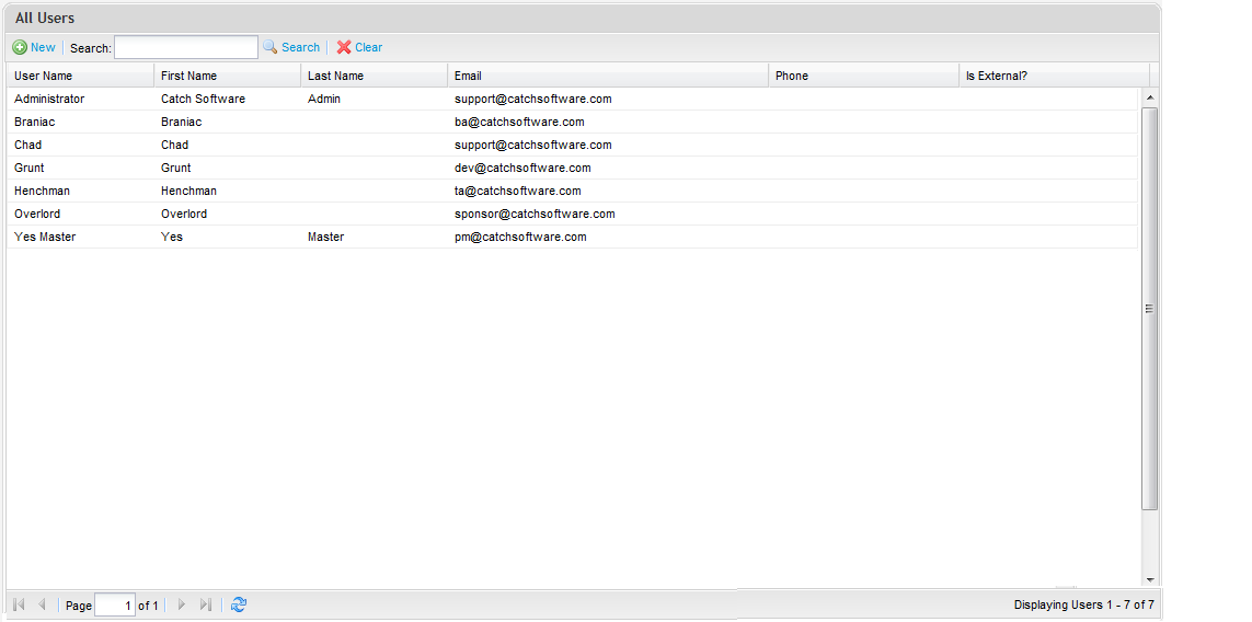 Right click on the ‘Users’ folder and select View Users - the view users screen will display.