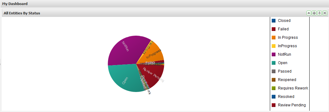 These allow you to view summary data from any of the saved queries you have created. This chart is particularly useful when you want to see an indication of the ratio e.g. Progress vs. Total. See Searching & TQL for information on how to create these queries.