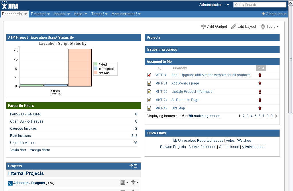 Enterprise Tester supports the ability to add dashboard gadgets to JIRA and Confluence. This provides the ability to share information from Enterprise Tester with the wider project team.