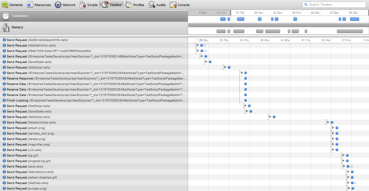 Now access Enterprise Tester, login, expand tree nodes, edit & save scripts etc. for a couple of minutes.