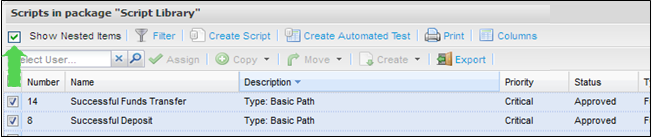When you view scripts you can view scripts in the package you have selected and also any sub packages if required. Tick or un-tick the “Show Nested Items” box as required.