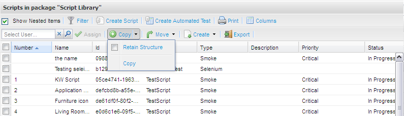The Scripts will be displayed. - Select the items by clicking the box on the left hand side - you can select all by selecting the top one.