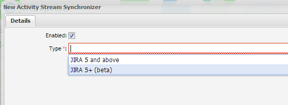 If you want to synchronize activities to JIRA using one of the external system configurations using the JIRA 5+ plugin, then you need to also add an activity stream of type "JIRA 5+ (BETA)" as well: