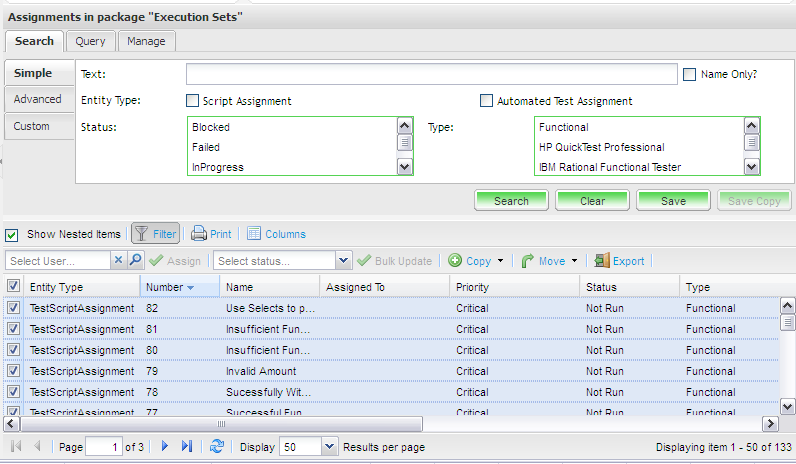 Where a large number of tests have been created within a single package, it may be helpful to filter these records into more manageable groups. To do this: