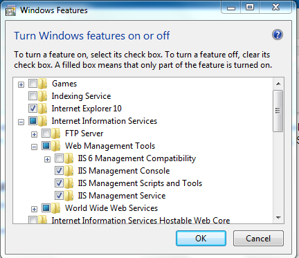 3. Under Web Management Tools, check that IIS Management Console are selected