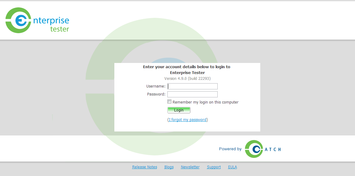 All users are required to log into Enterprise Tester. After navigating to the your ET instance in your browser, the login screen will appear.