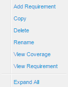 You can access the Requirement Coverage screen by right clicking on the requirement that you wish to view and manage the test script coverage and selecting View Coverage.