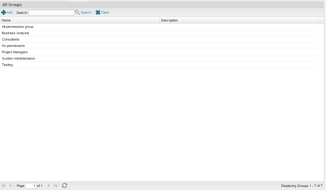 Groups allow you to create predefined security profiles for users within an organization. This is a fast and efficient way of managing users’ permissions. By assigning a user to a group, they will then be granted the permission that the group has been assigned.