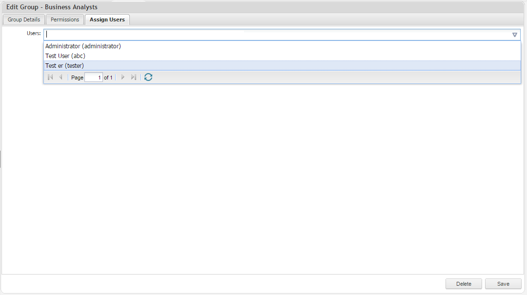 - Select the Assign Users tab. Select the users you wish to ad to this group
