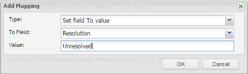 Set Field to Value | Set field to value field mapping allows you to specify a value to populate the field in ET with regardless of the values in JIRA. All Field types are supported. |