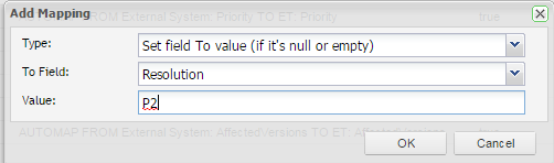 Map Field – Map from ET: Affected Versions to External System: Affected Versions