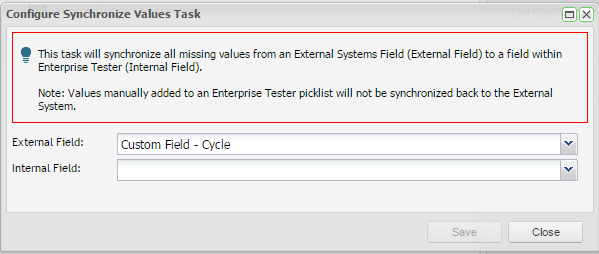 Map Attachments | No | Synchronizes the set of attachments between Enterprise Tester and External System (e.g. JIRA). This will add new attachments that have not been synchronized previously, and remove previously synchronized attachments that have since been removed. |