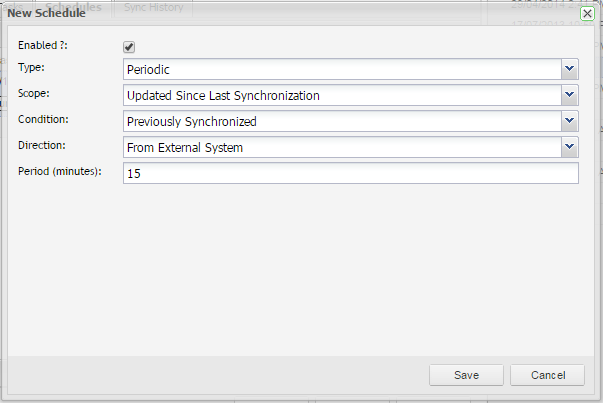 The synchronization frequency can also be configured from the Schedules tab. There are 3 options that can be configured: