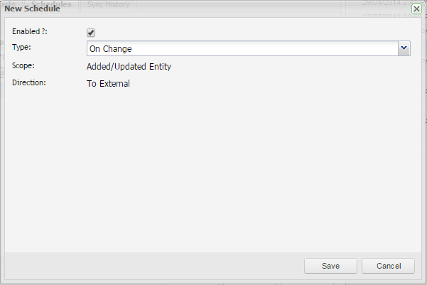 Daily | You can choose to only update entities since the last synchronization or synchronize all. | Four options: | N/A | Specify the time using the (24hr clock) when the synchronization will occur daily. |