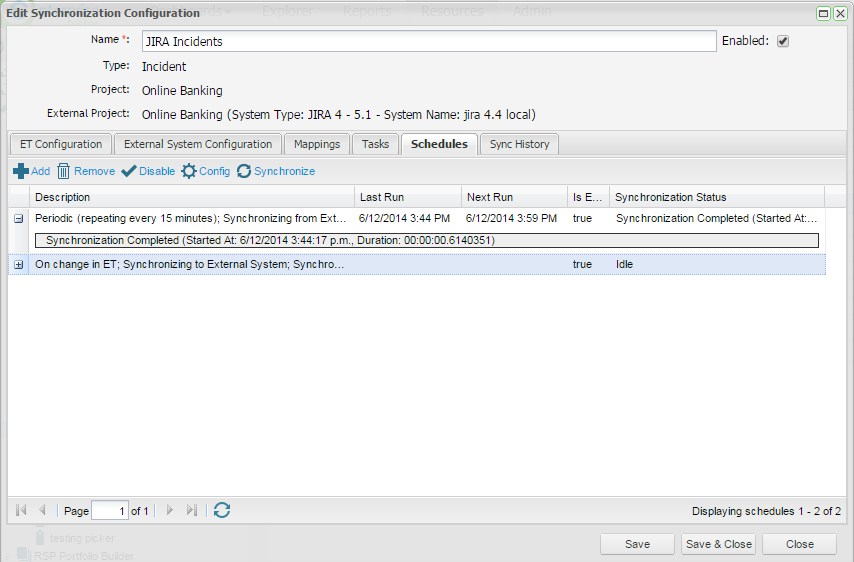 - Synchronize on change in ET in the direction of ET to JIRA. A sychronization of all incidents added or updated in ET since last synchronized will be initiated at the time a change occurs to an incident. This synchronization only updates JIRA with the changes made in ET.