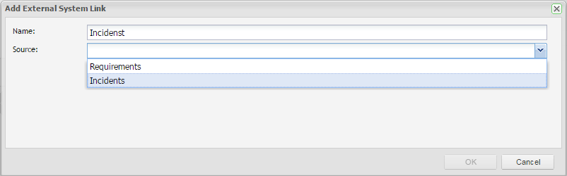 The Add External System Link screen will appear. Complete the Name and select the Source. This is the entity type you wish to synchronize.