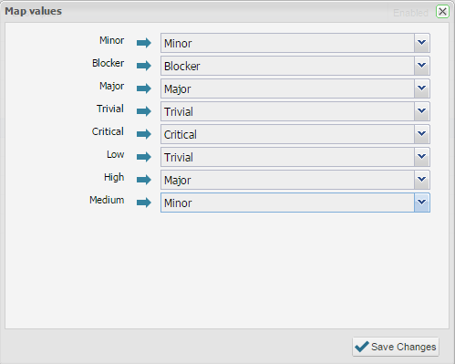 When using the map field configuration, you will be required to manually map the field values. This is useful when the values in ET and JIRA are different or if you have more that one value that will map to the same value in the other system.