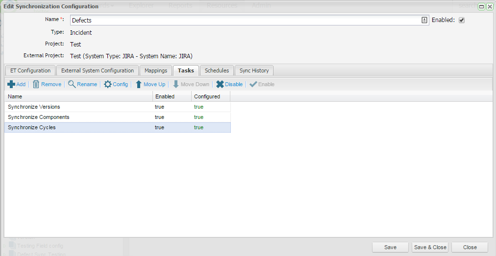 In addition to synchronizing requirements and incidents between JIRA and ET you can also set up tasks to synchronize picklist field values. A good example of when this would be useful are the fields Versions and Components.
