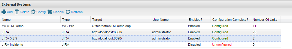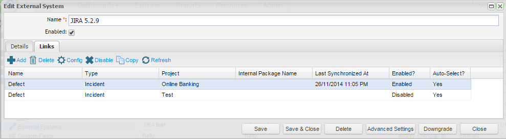 You can delete a project link from either the External Systems configuration area in the Admin tab or from the Resources tab.