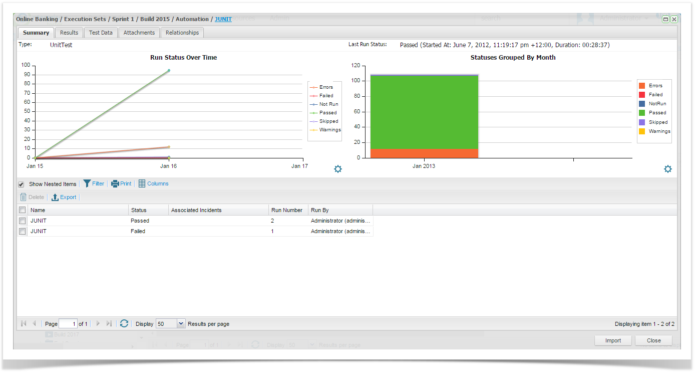 You can select a run in the grid to view the full results.